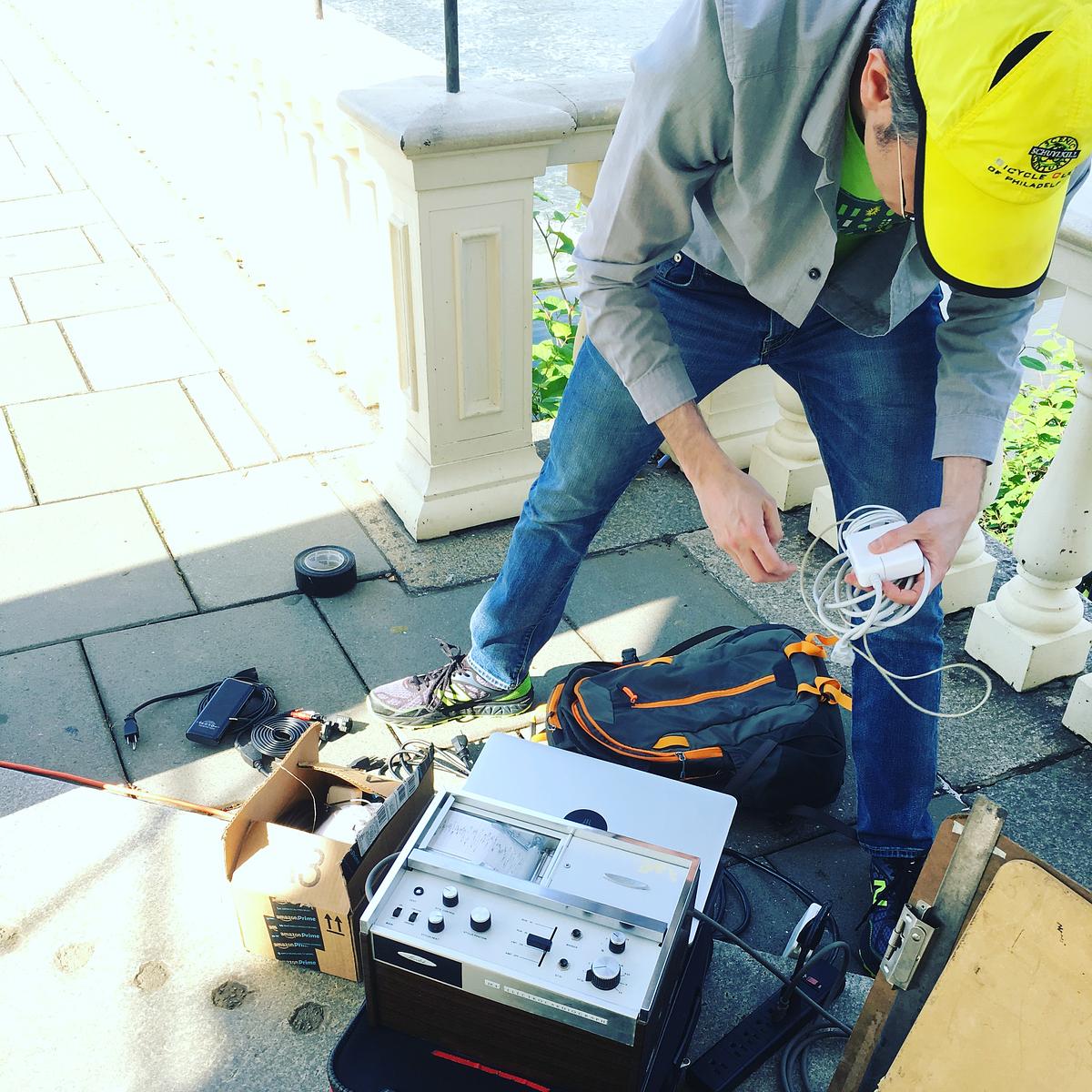 A site specific data-production project at the Schuylkill River Banks, led by engineer Sam Cusumano. Afterwards, a sculpture and listening station to exhibit our recordings was installed at the Schuylkill Center for Environmental Education, and then at City Hall in Philadelphia, PA.