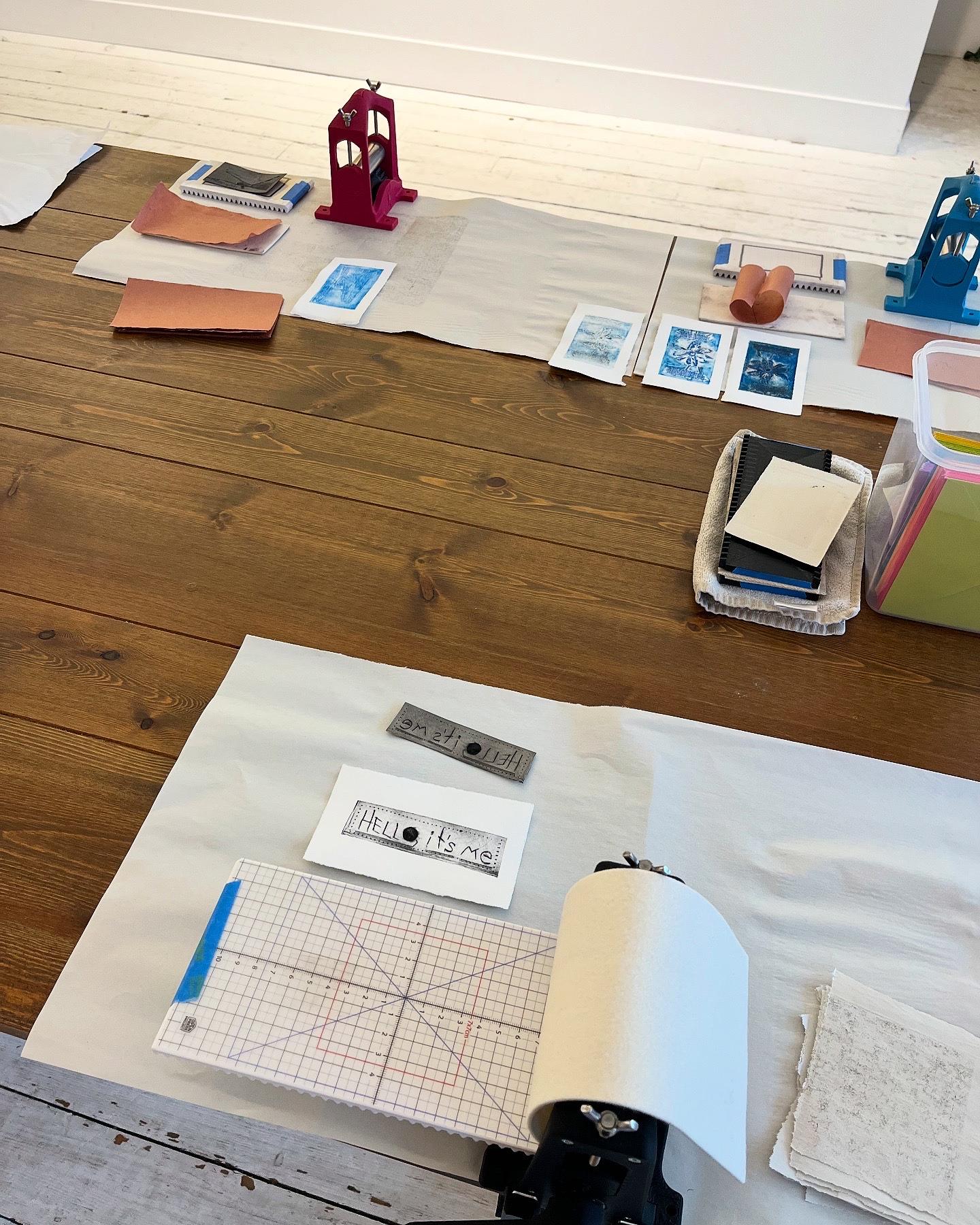 Miniature Collagraph workshop with trio of Open Press Project 3-D printed etching presses, Paradigm Gallery + Studio, Philadelphia, PA. Summer 2025.