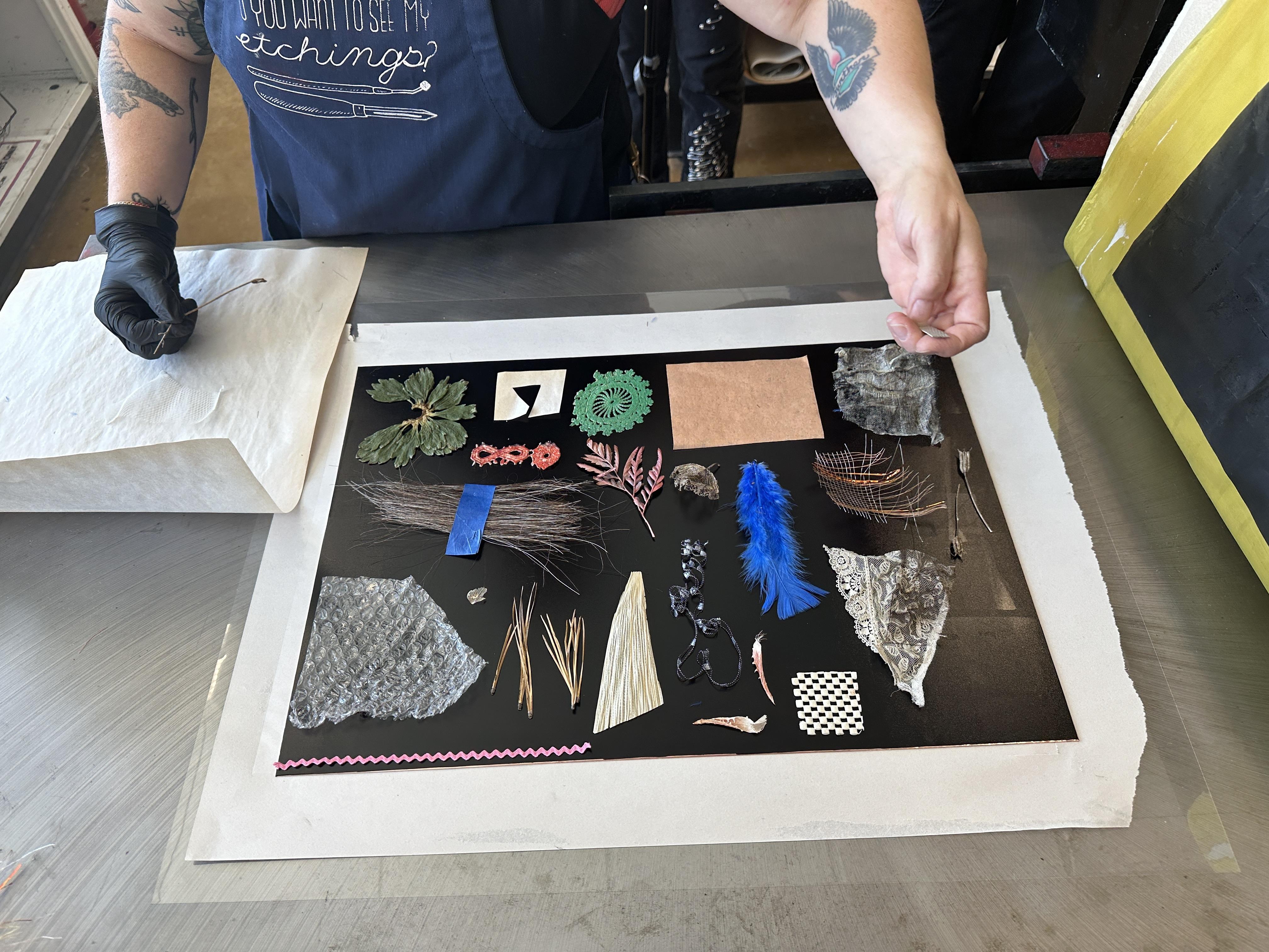 Soft ground ephemera demonstration, Tyler School of Art, Philadelphia, PA. Fall 2024