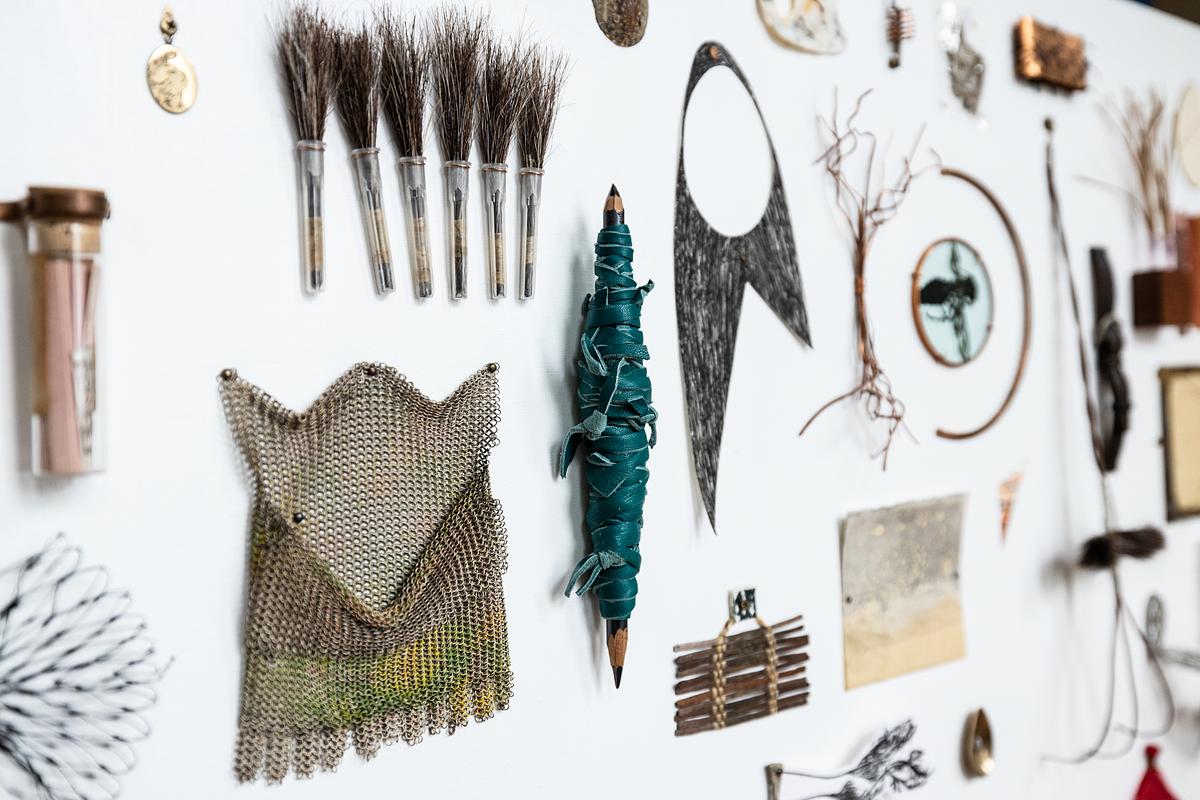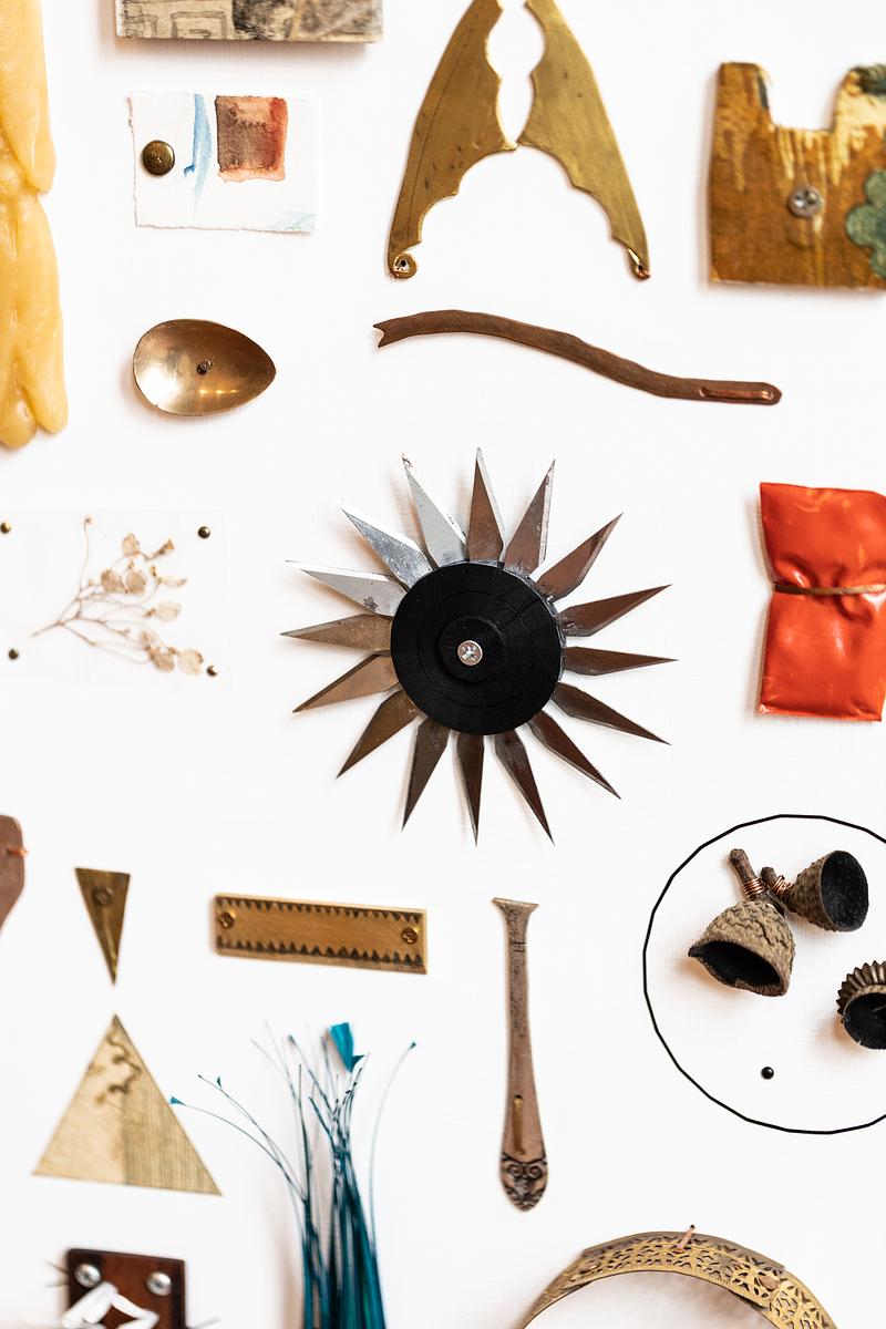 The Forager works serve as a feedback loop; an archive as well as a landing zone for new ideas. They use knolling to make a sculptor's scrapbook of reference material, maquettes, tests, proofs, and collected treasures. They began as a way to catalogue all the things in my studio I'd been holding on to from years ago - recycling old objects to make space for what's new.